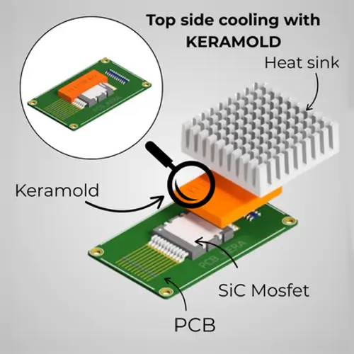 Bei leistungsstarkes Wide Band Gap Halbleiter wie SiC-oder GaN erfolgt die Wärmeabfuhr meist über die Chipoberseite. Die Application Note zeigt, wie KERAMOLD ® in Kombination mit dem Overmolding Prozess aktive Bauteile passgenau schützen und kühlen kann.