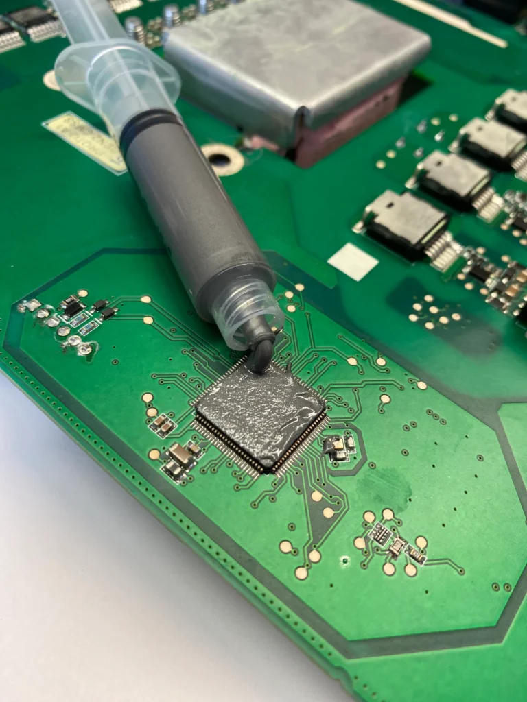 Neben dem manuellen Auftrag können Wärmeleitpasten auch anhand von Siebdruck oder mit Hilfe von Dispenssystemen appliziert werden.